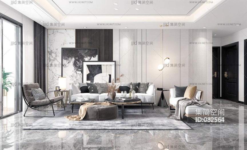 现代客厅 3d模型 (1)3d模型下载