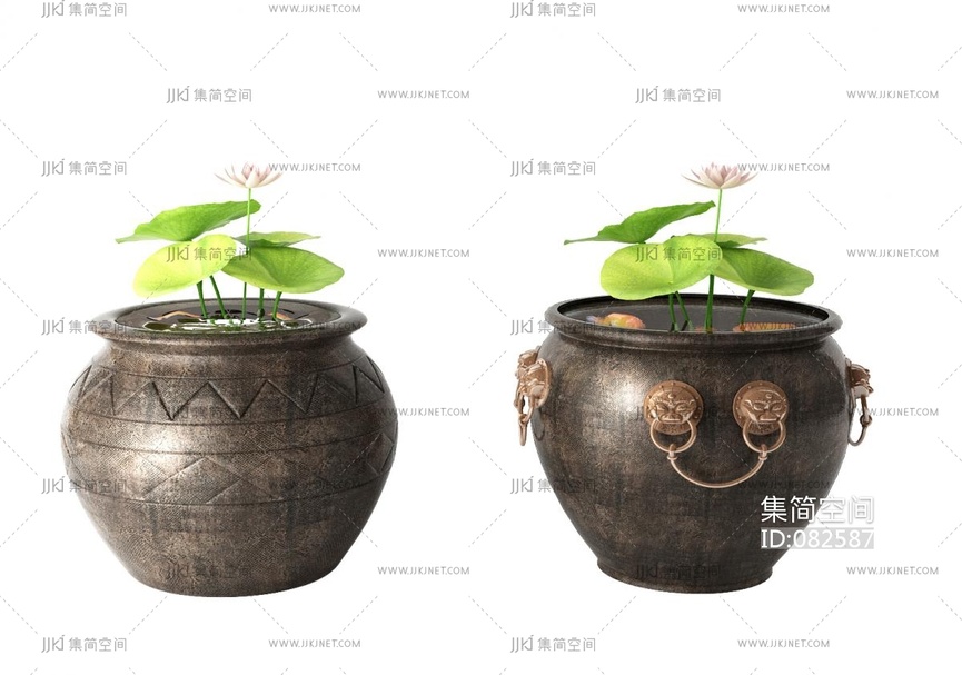 中式盆景荷花,缸鱼缸 3d模型下载 [模型ID:82587]