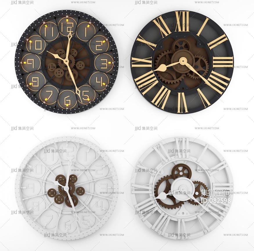 工业风LOFT齿轮石英钟,挂钟, 3d模型下载 [模型ID:82598]