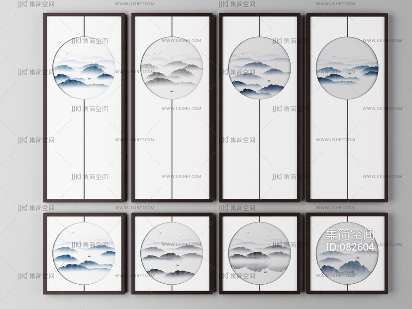 新中式风景山水装饰画挂画, 3d模型下载 [模型ID:82604]