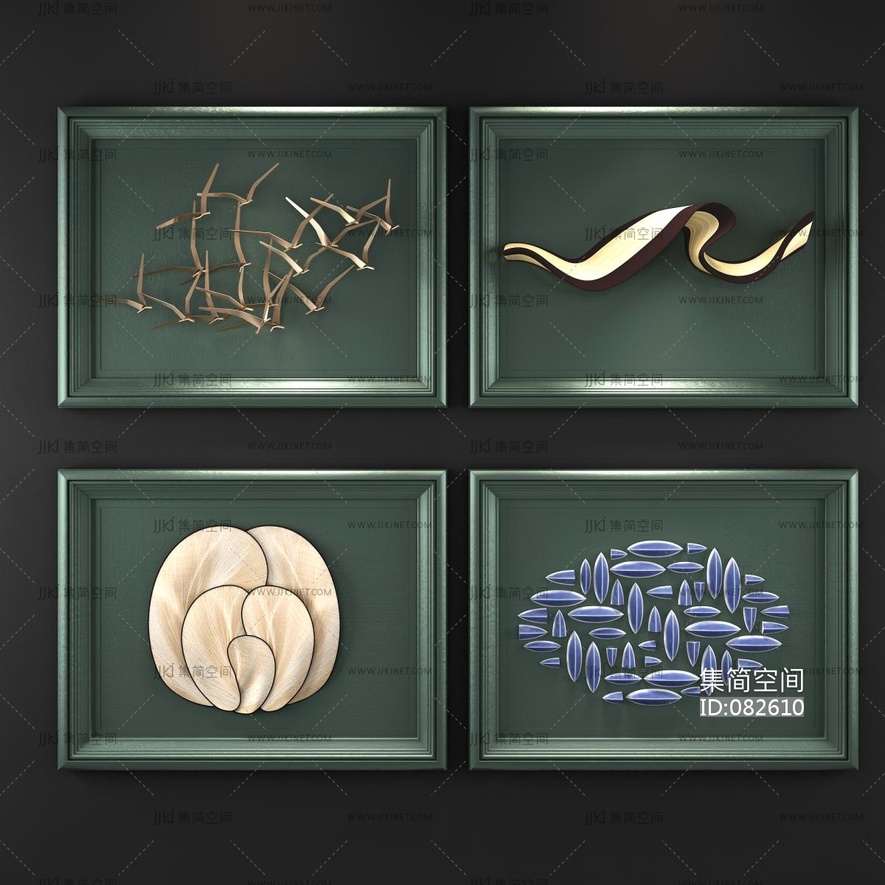 新中式现代装饰挂画立体画 3d模型下载 [模型ID:82610]