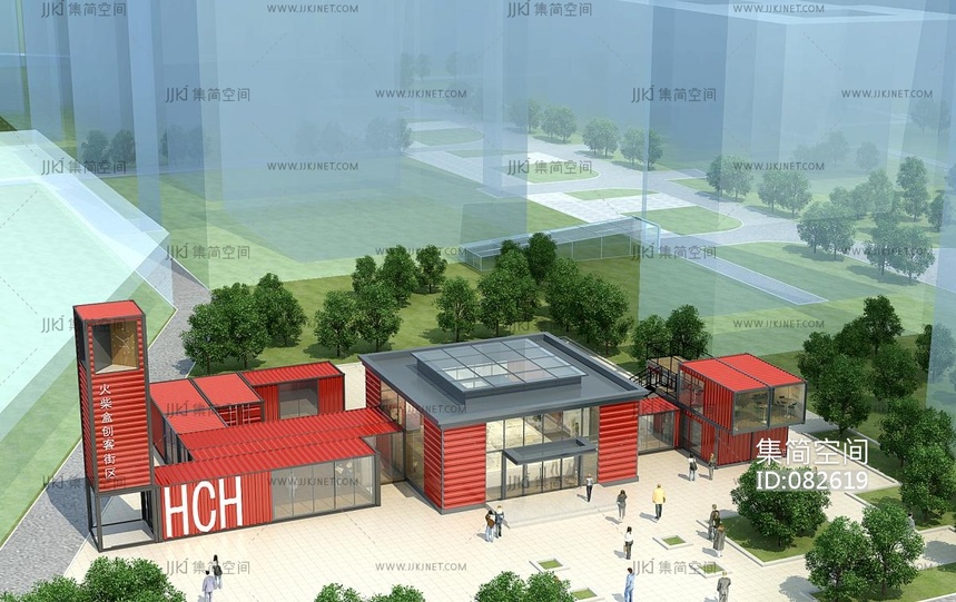 现代集装箱建筑, 3d模型下载 [模型ID:82619]