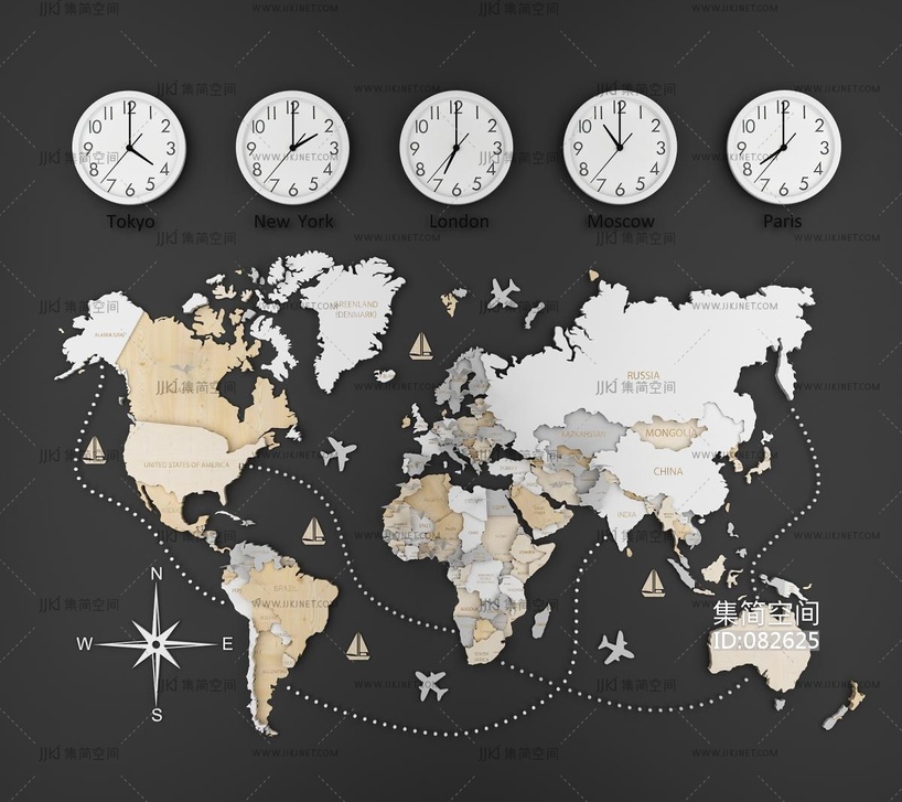 北欧现代世界地图,石英钟,挂钟,时钟,墙饰挂饰挂件 3d模型下载 [模型ID:82625]