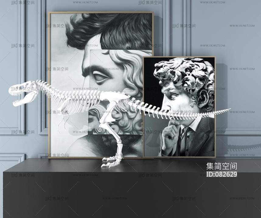 恐龙,霸王龙骨架摆件组合 3d模型下载 [模型ID:82629]