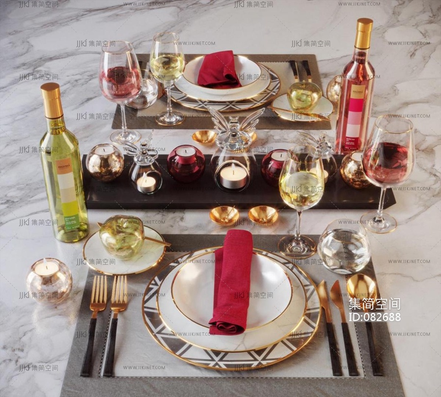 厨房用品_糖果罐_调味品_杯子3D酒杯酒瓶子模型3d模型下载