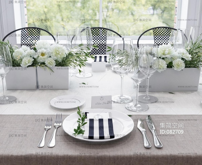 欧式餐具刀叉盘子,花插花, 3d模型下载 [模型ID:82709]