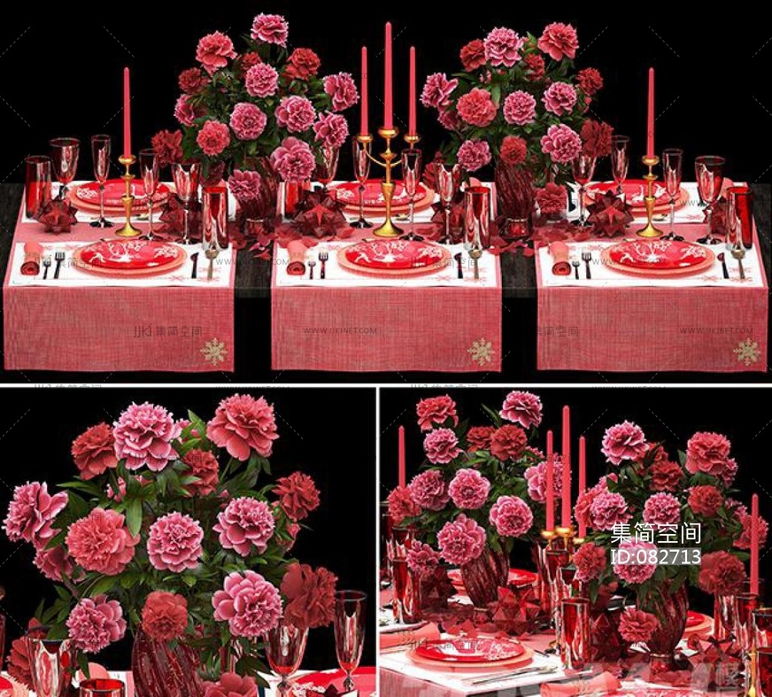 红色牡丹花,餐具盘子烛台 3d模型下载 [模型ID:82713]