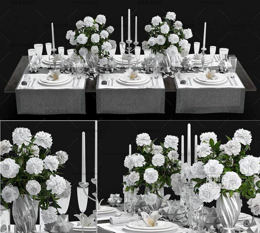 欧式餐具盘子,牡丹花花瓶 3d模型下载 [模型ID:82714]
