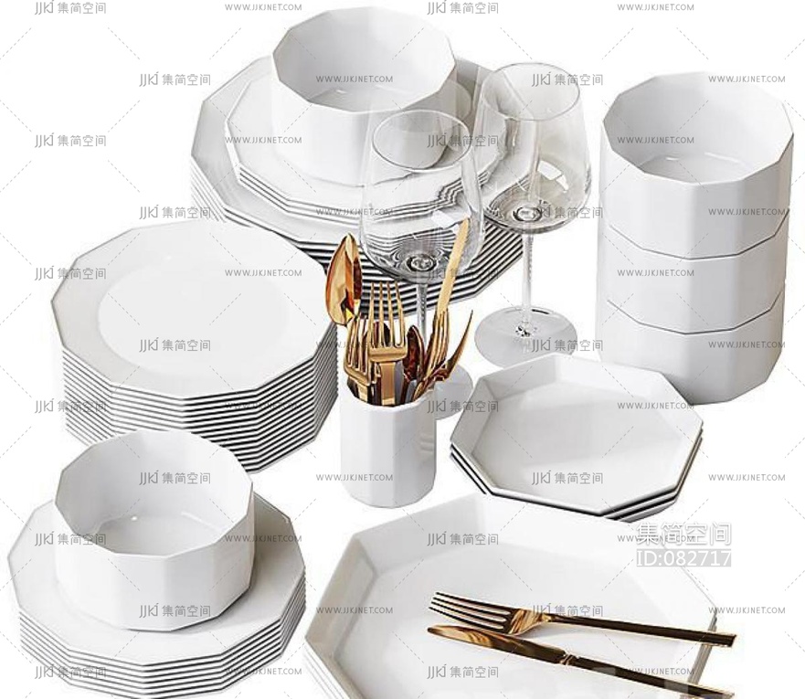 盘子碗筷刀叉,餐具 3d模型下载 [模型ID:82717]