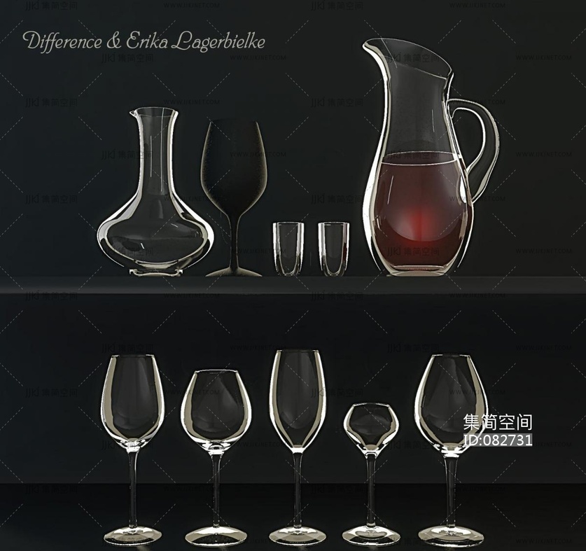 红酒洋酒玻璃酒杯高脚杯,分酒器 3d模型下载 [模型ID:82731]
