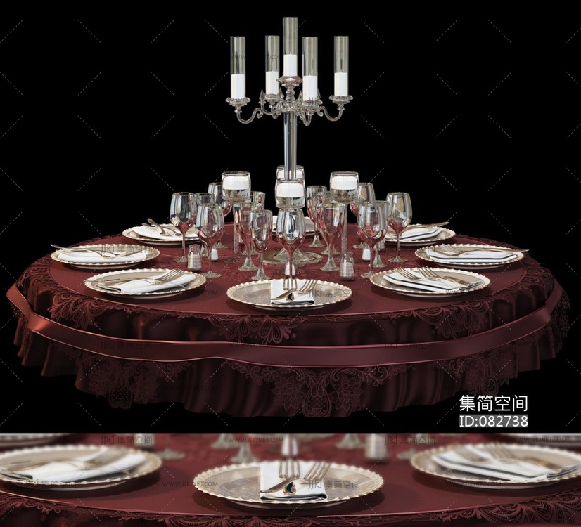 欧式圆形餐桌桌布餐具烛台 3d模型下载 [模型ID:82738]