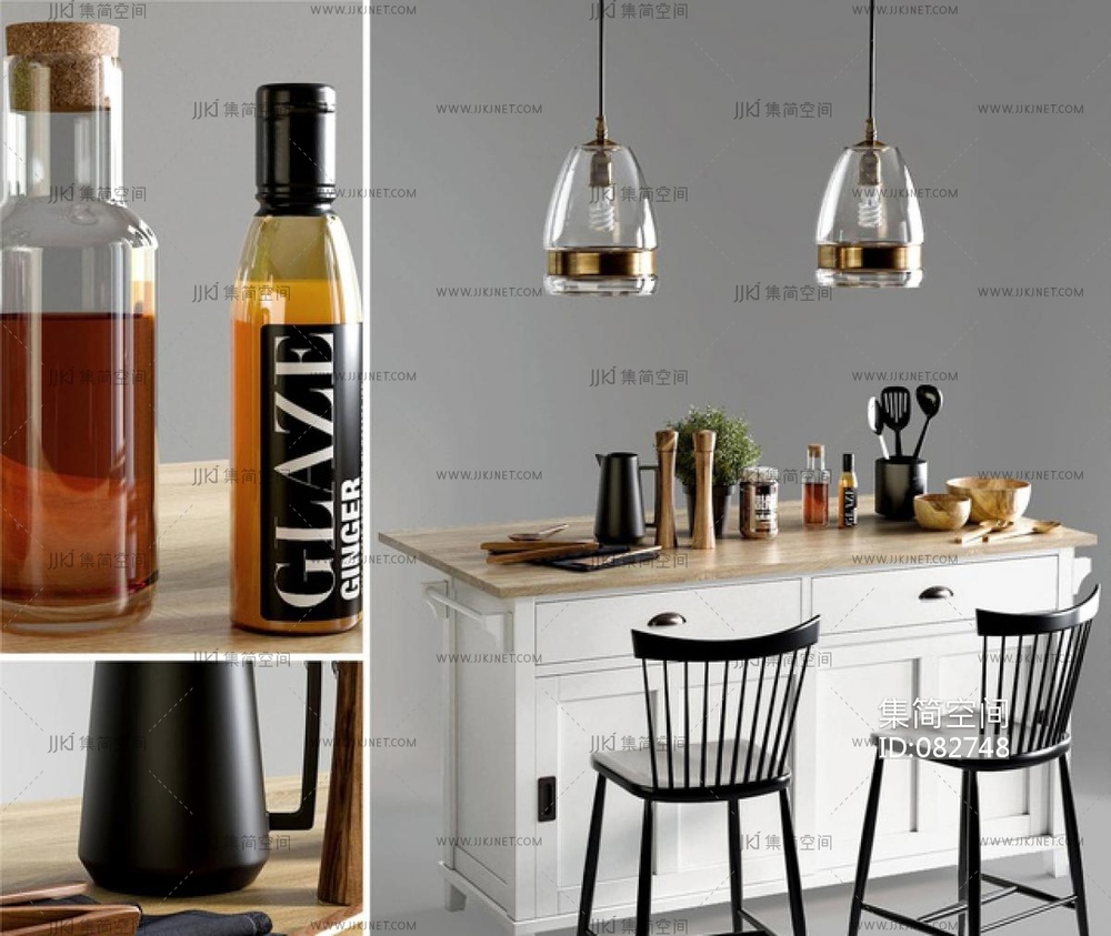 欧式餐厅岛台餐具酒瓶子a 3d模型下载 [模型ID:82748]