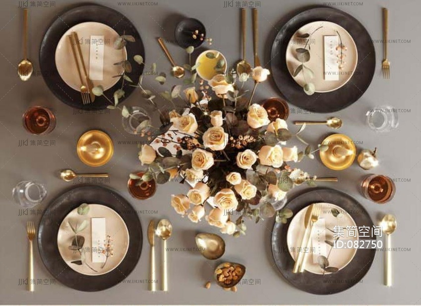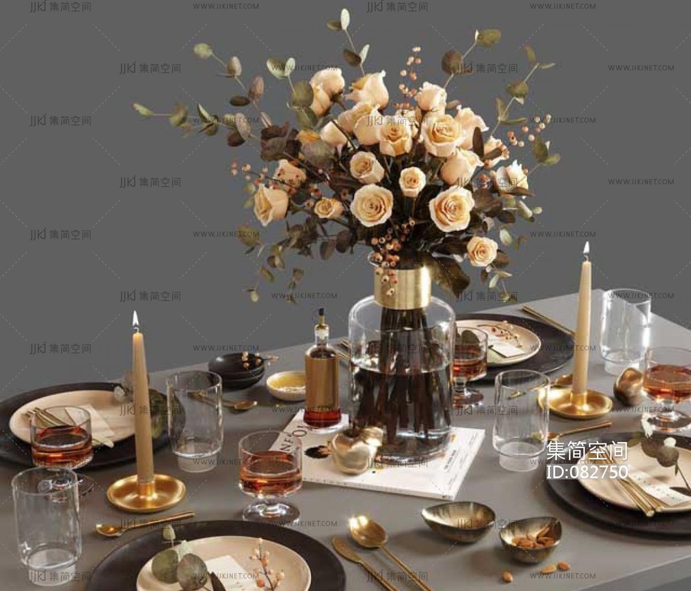 欧式餐具盘子玫瑰花花瓶 3d模型下载 [模型ID:82750]