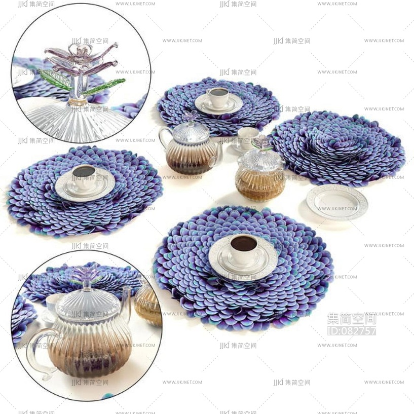 玻璃茶壶餐具垫子 3d模型下载 [模型ID:82757]