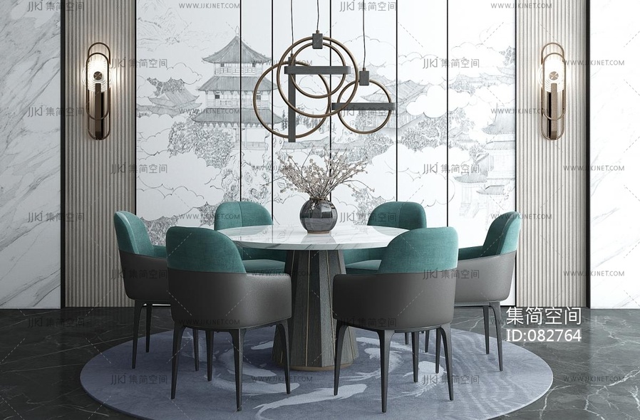 新中式圆形餐桌椅, 3d模型下载 [模型ID:82764]