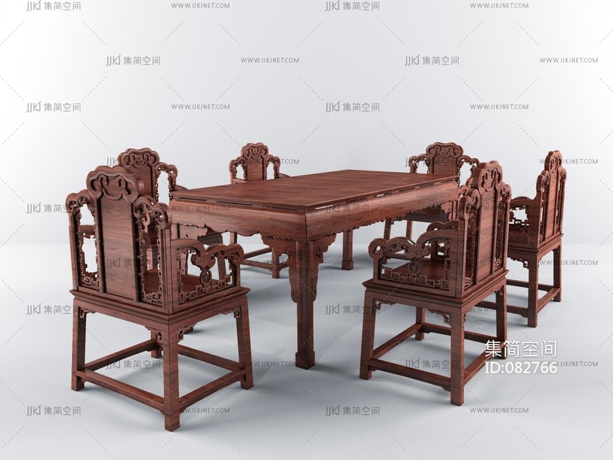 中式古典雕花实木餐桌椅子八仙桌 3d模型下载 [模型ID:82766]