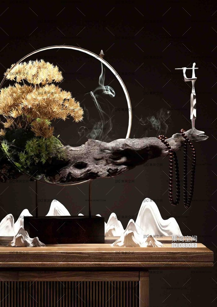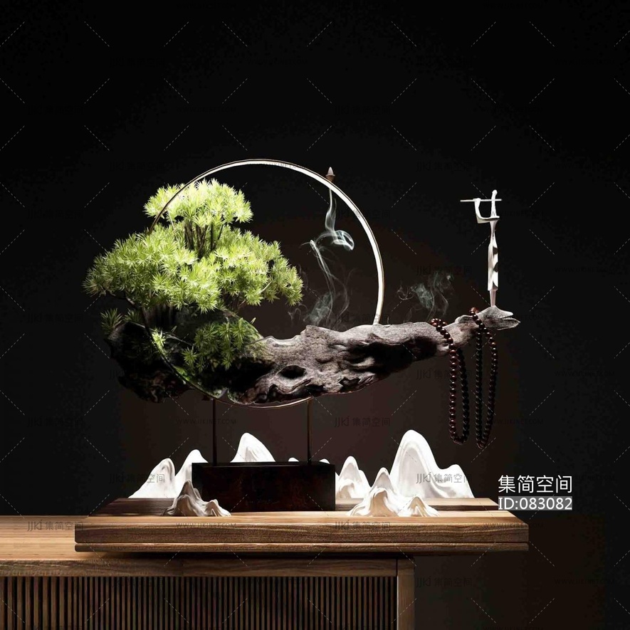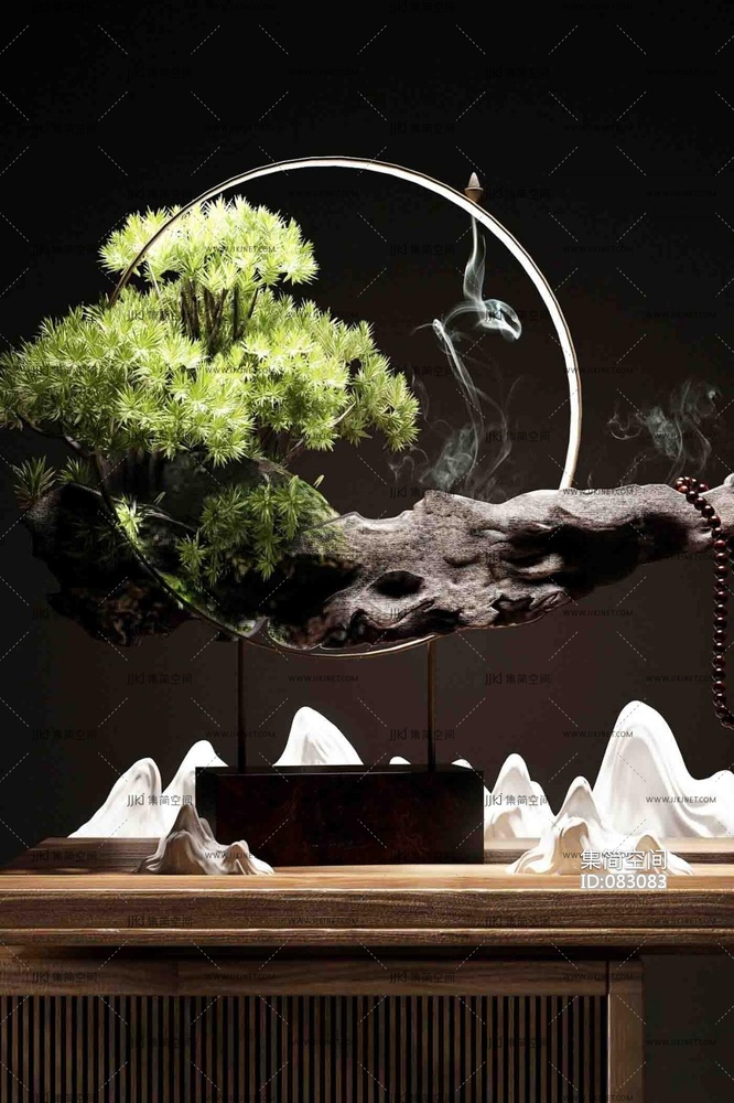 新中式禅意松树盆景盆栽植物摆件佛香 3d模型下载 [模型ID:83082]