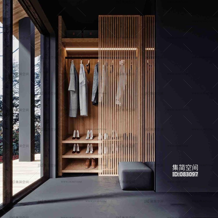 玄关衣柜,衣服鞋子,高跟鞋 3d模型下载 [模型ID:83097]