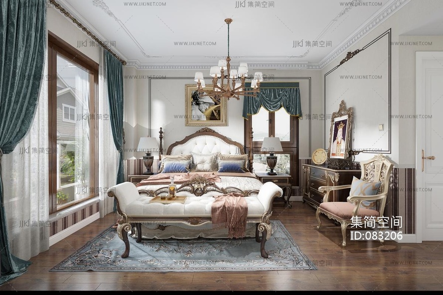 欧式法式美式主卧室 3d模型下载 [模型ID:83206]