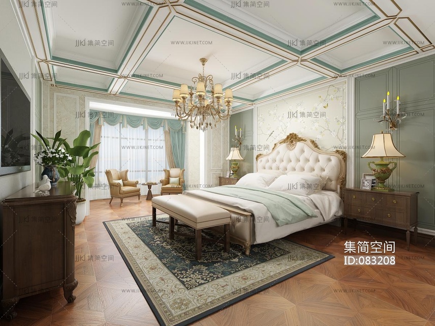 欧式美式法式古典雕花主卧室 3d模型下载 [模型ID:83208]