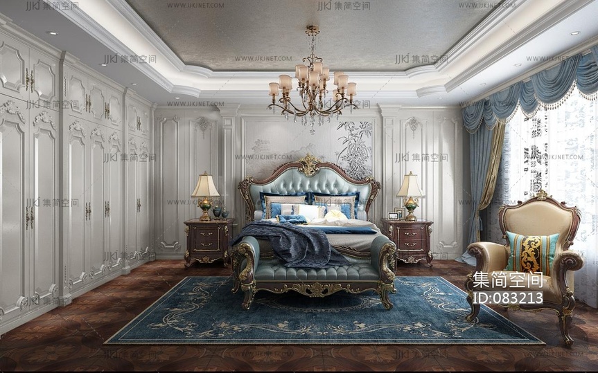 欧式法式美式古典雕花卧室双人床, 3d模型下载 [模型ID:83213]