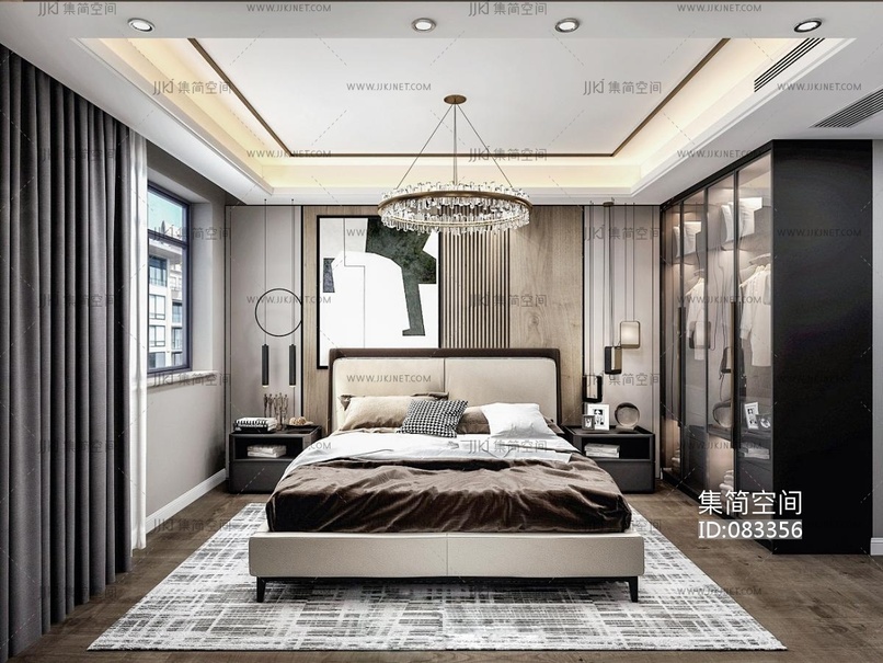 现代卧室,双人床,衣柜 3d模型下载 [模型ID:83356]