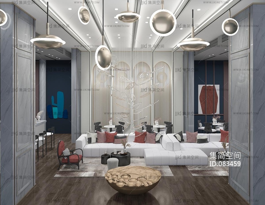 售楼处休闲洽谈区,沙发,公共座椅摆台 3d模型下载 [模型ID:83459]