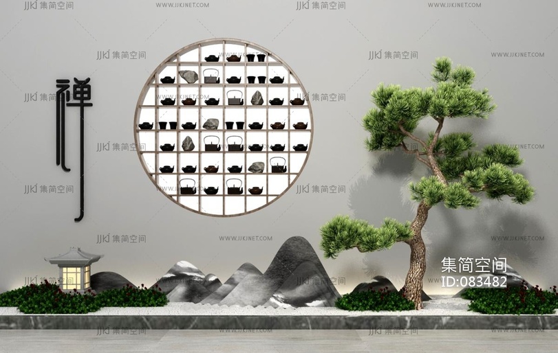 中式景观小品,松树,茶具山脉形状石头 3d模型下载 [模型ID:83482]