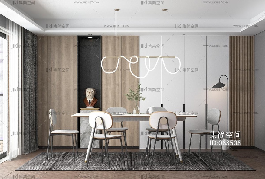北欧现代餐厅,餐桌椅异形吊灯 3d模型下载 [模型ID:83508]