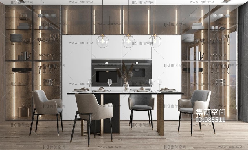 现代餐桌椅, 3d模型下载 [模型ID:83511]