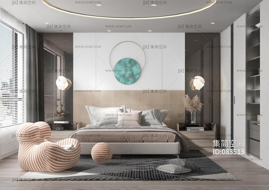 北欧现代卧室,双人床,床头柜 3d模型下载 [模型ID:83513]
