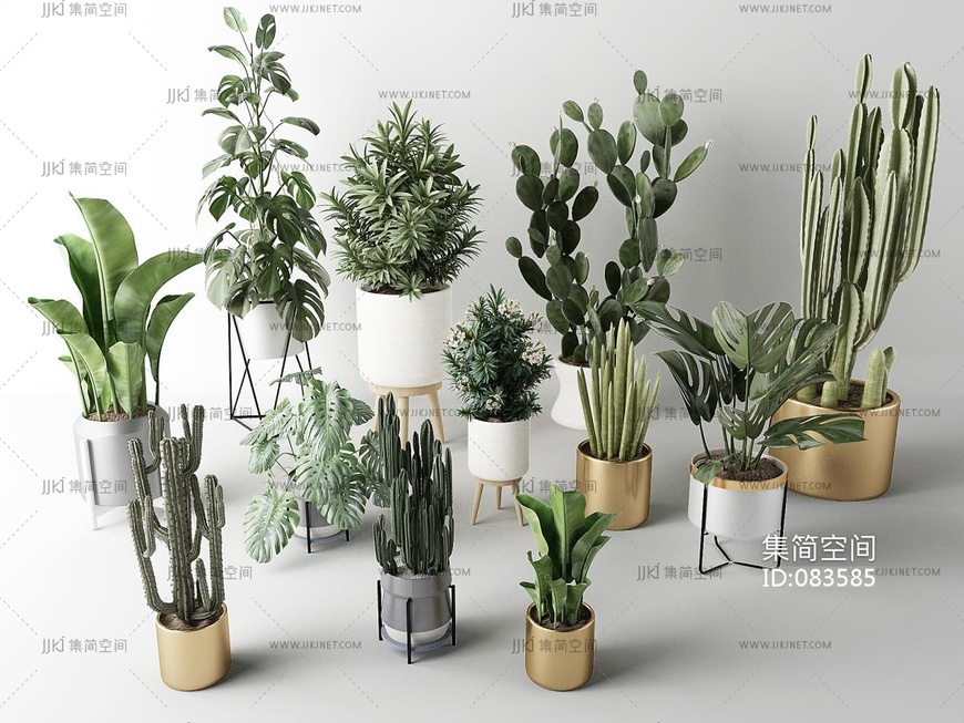 龟背竹仙人掌盆栽植物绿植 3d模型下载 [模型ID:83585]