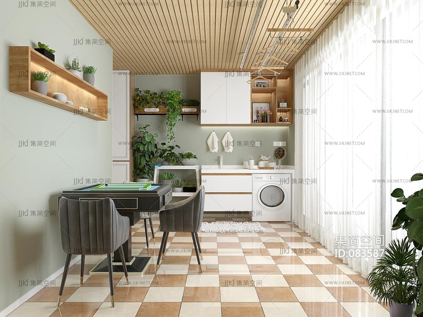 北欧现代阳台洗衣机花槽,麻将桌 3d模型下载 [模型ID:83587]