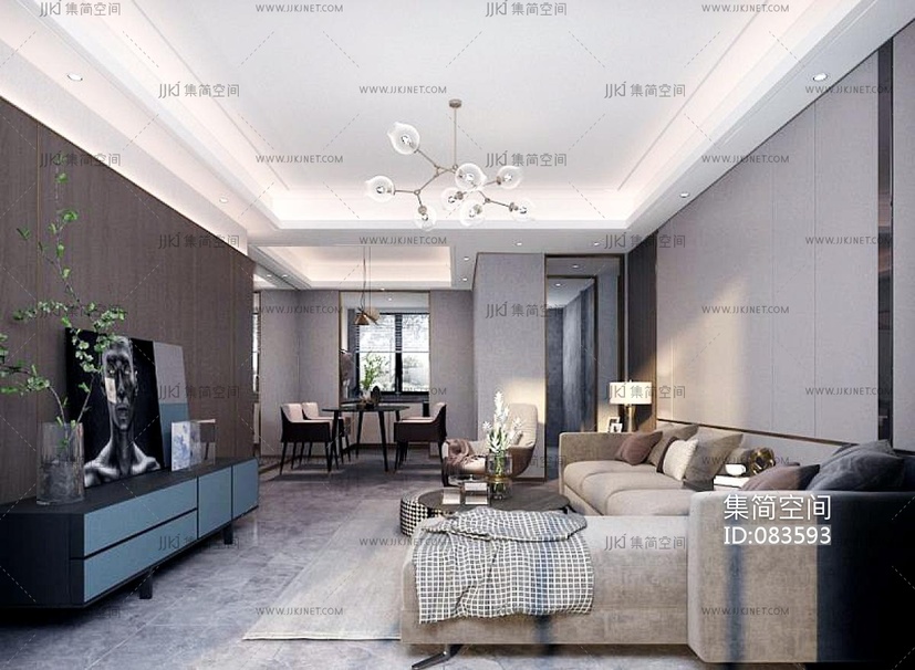 现代家装客厅,电视柜转角沙发 3d模型下载 [模型ID:83593]