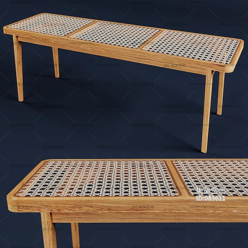 Norr11 Le Roi长凳,木制网格格子长凳 3d模型下载 [模型ID:83611]