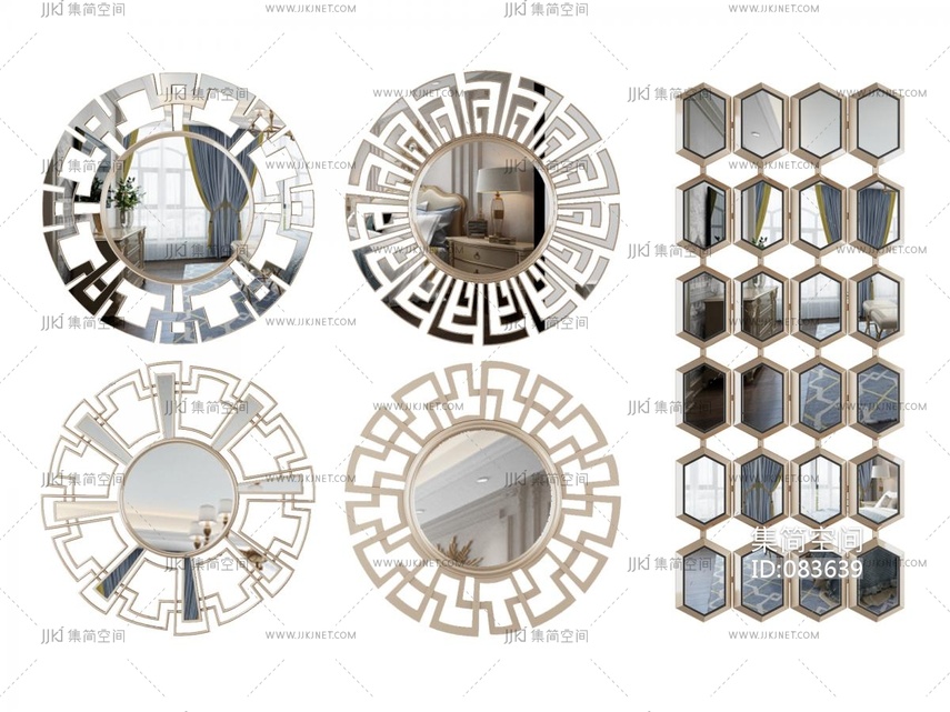 新中式装饰镜,挂镜,镜子 3d模型下载 [模型ID:83639]