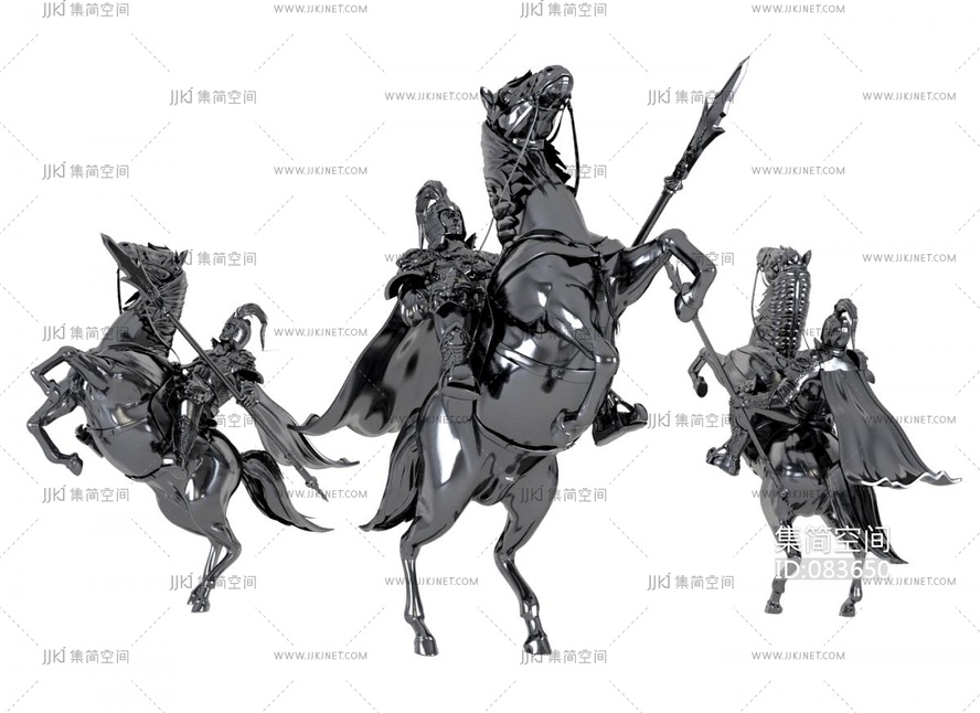 将军骑马,武士铠甲人物雕塑 3d模型下载 [模型ID:83650]