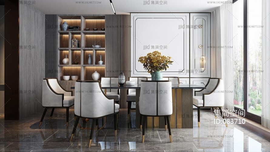 新中式餐厅,餐桌椅 3d模型下载 [模型ID:83710]