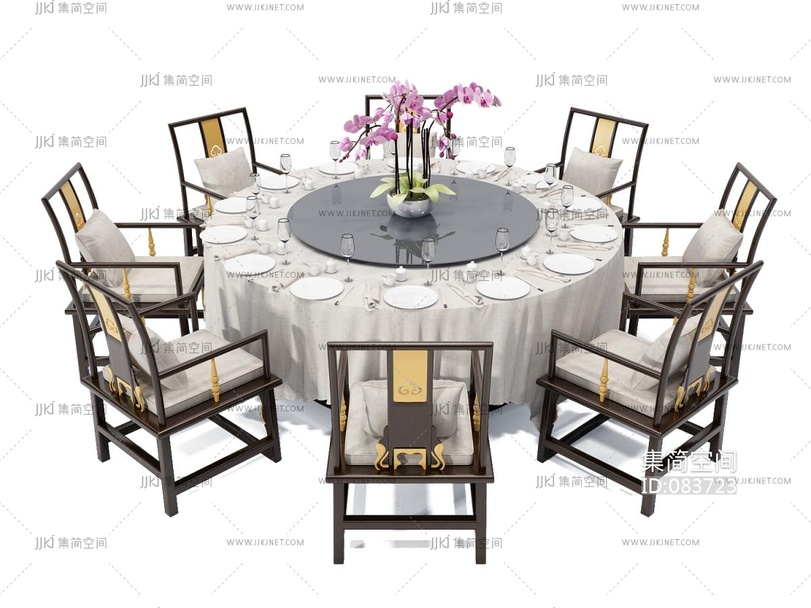 圆形包间包房餐桌椅子,椅子 3d模型下载 [模型ID:83723]