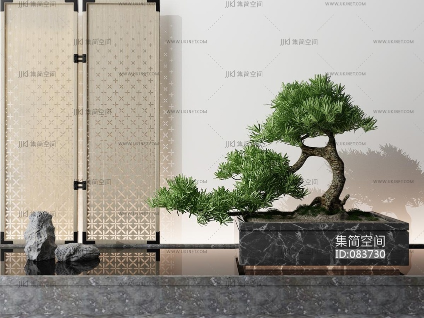 新中式迎客松盆景水景,景观小品 3d模型下载 [模型ID:83730]