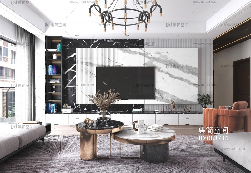 客餐厅,茶几电视墙 3d模型下载 [模型ID:83734]