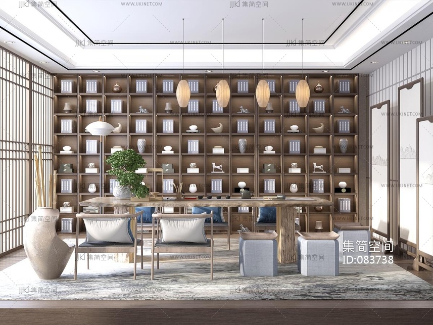 新中式侘寂茶室3D模型3d模型下载