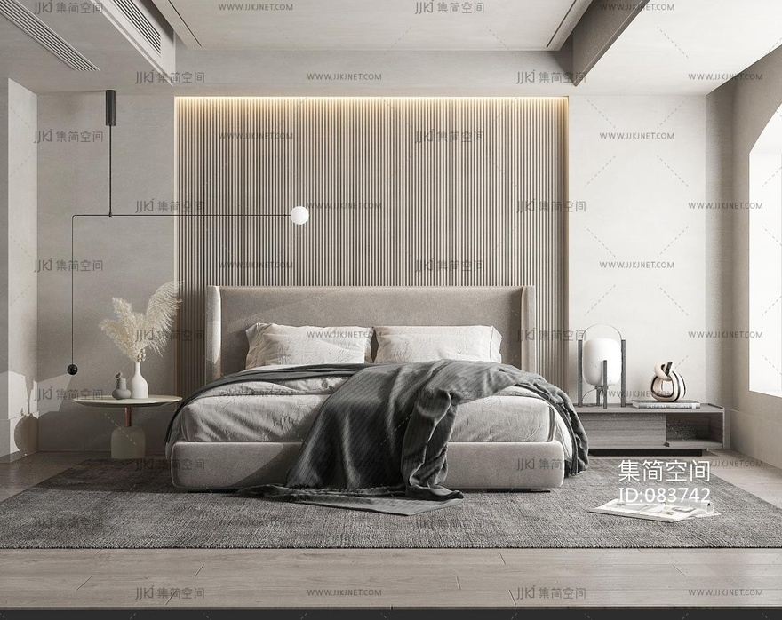 现代卧室,双人床, 3d模型下载 [模型ID:83742]