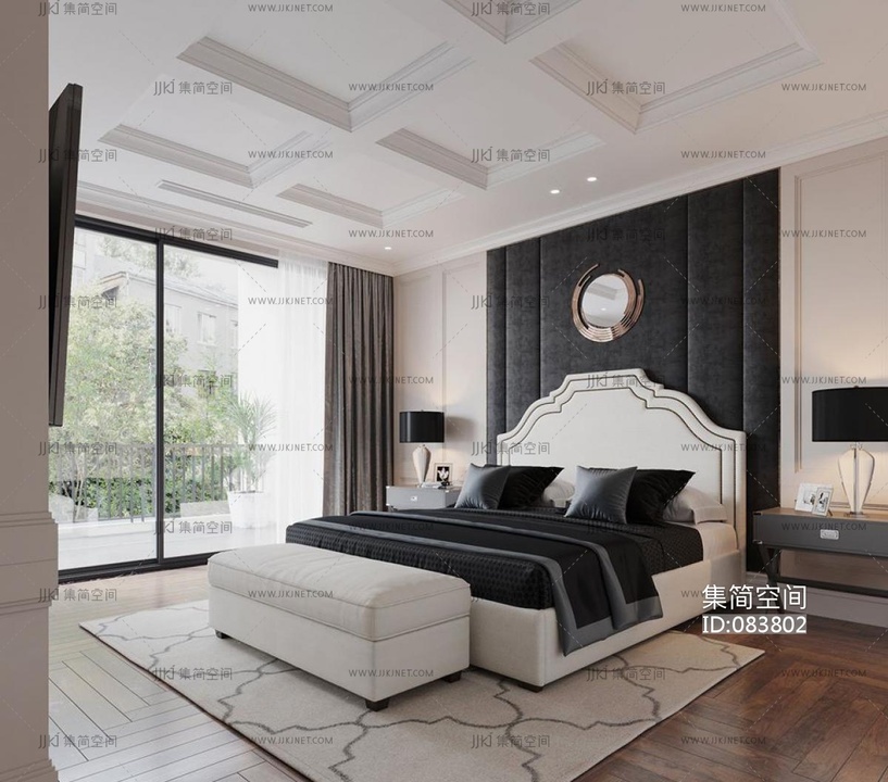 欧式,简欧卧室双人床,床头柜 3d模型下载 [模型ID:83802]