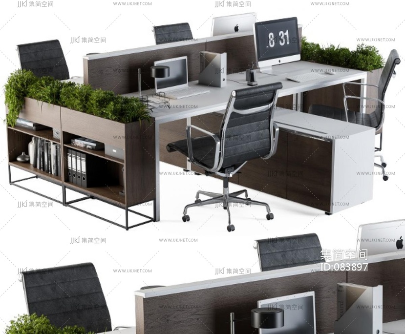 办公桌椅,员工公务办公桌 3d模型下载 [模型ID:83897]