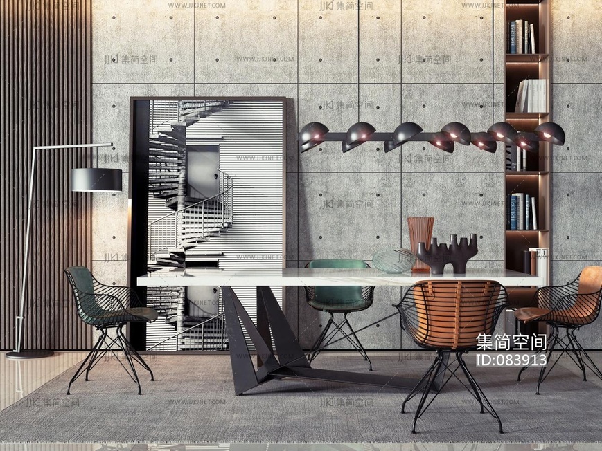 现代工业风餐桌椅,吊灯 3d模型下载 [模型ID:83913]
