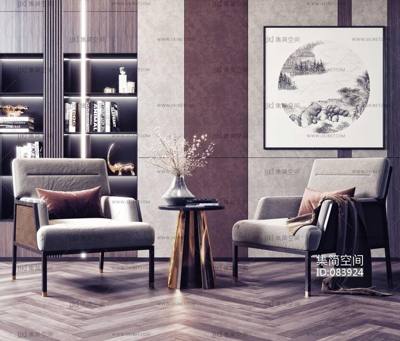 新中式现代休闲椅, 3d模型下载 [模型ID:83924]