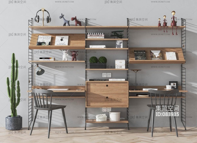 书桌椅书架 3d模型下载 [模型ID:83935]