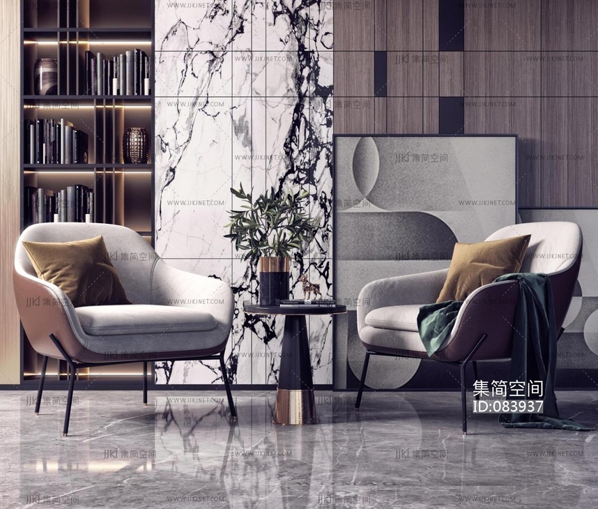 现代休闲椅,小边几 3d模型下载 [模型ID:83937]