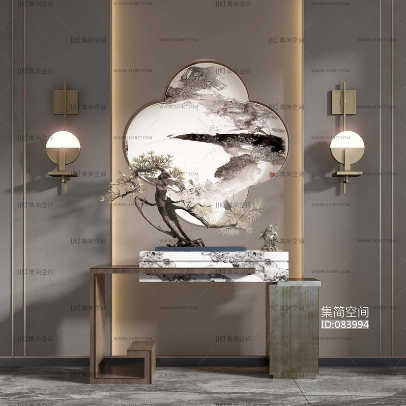新中式玄关端景台 玄关台 3d模型下载 [模型ID:83994]